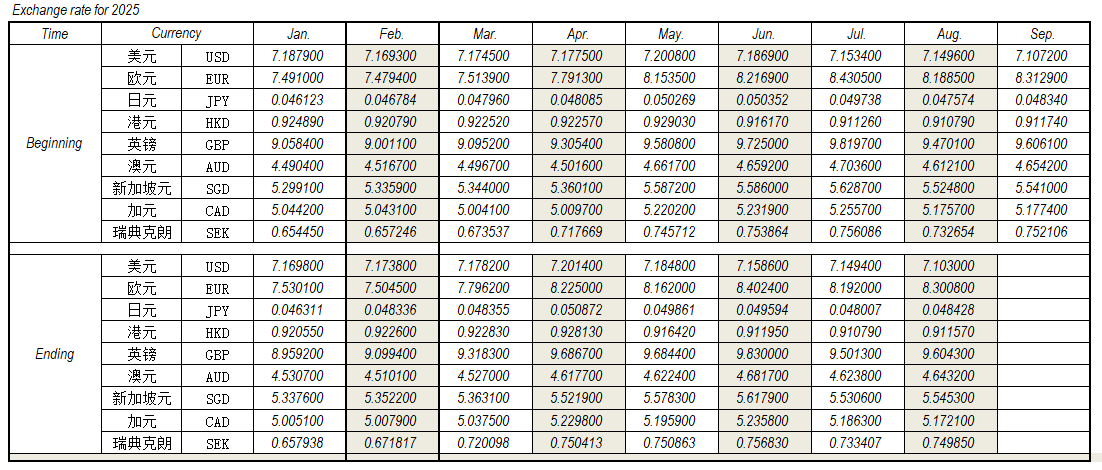 2025年8月外匯匯率,來源中國人民銀行供參考。